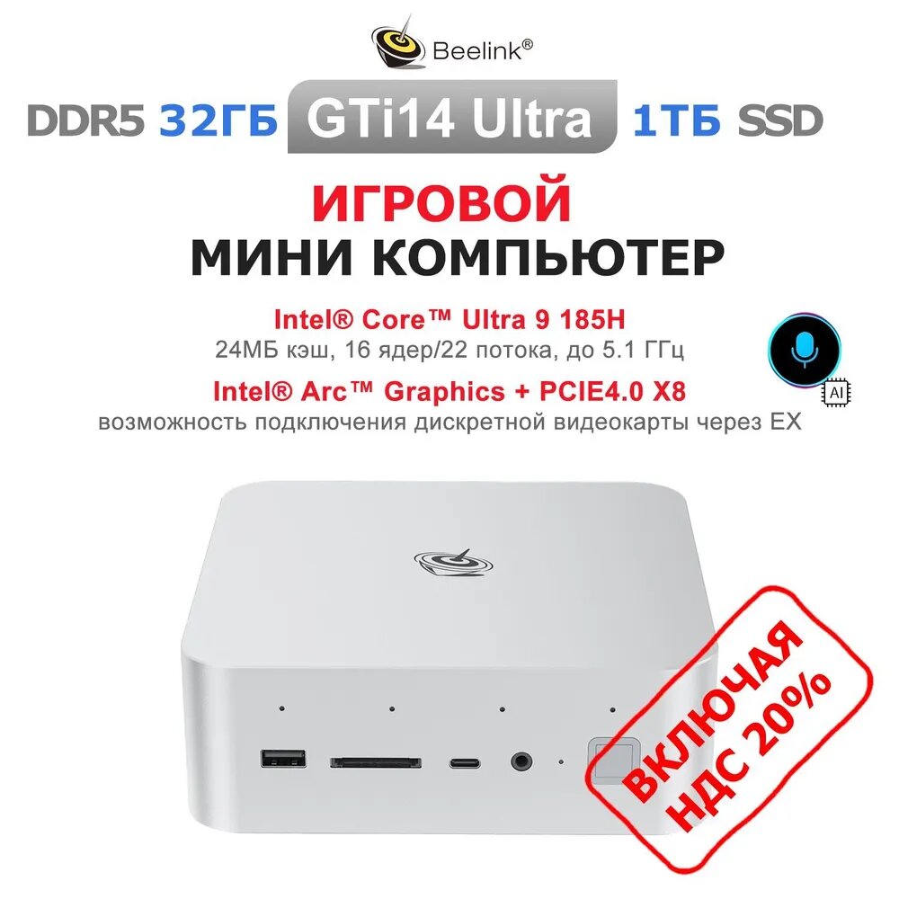 Мини ПК Beelink GTi14 UItra (Intel Core Ultra 9 185H Processor До 5.1 ГГц, RAM 32 ГБ, SSD 1024 ГБ, Intel Arc Graphics, Windows 11 Pro), серебристый: сравнение цен, характеристики, фото, актуальное наличие и цены.