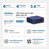 Мини-ПК Beelink Mini S13 Intel Twin Lake N150(до 3.6GHz), 16GB DDR4 500GB M.2 PCIE SSD, мини настольные компьютеры Поддержка 4K@60Hz Dual HDMI Display/WiFi6/BT5.2/USB3.2/1000Mbps LAN/WOL Дом/Офис: сравнение цен, характеристики, фото, актуальное наличие и цены.
