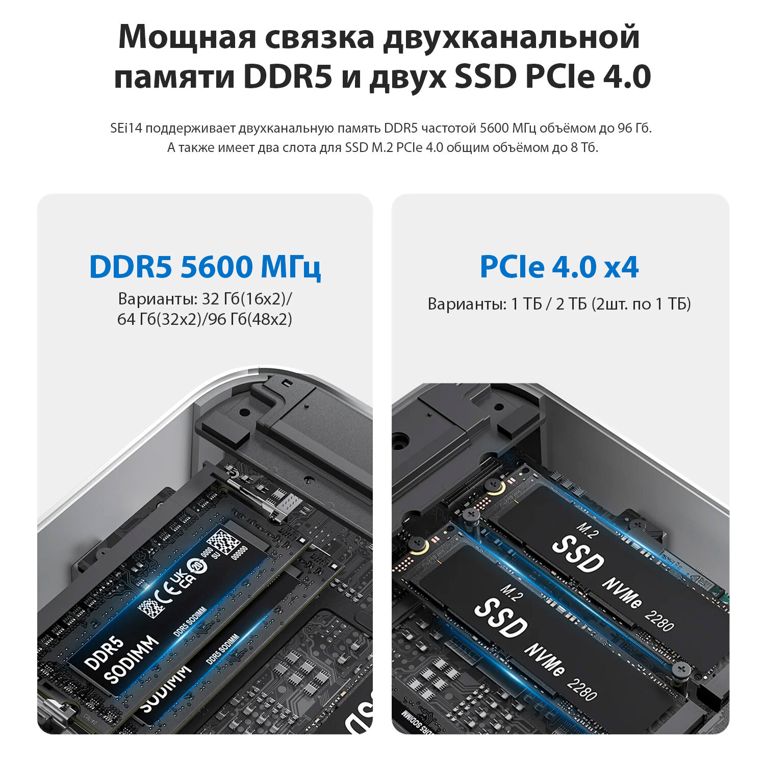 Купить Мини ПК Beelink SEi14 Intel Core Ultra 9 185H, 32GB DDR5, 1TB SSD, Win11 pro с доставкой по всей России.