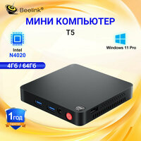 Купить Мини ПК Beelink T5(Intel Celeron N4020 CPU, RAM 4 ГБ, eMMC 64 ГБ, Intel HD Graphics 500, Windows 11 Pro), микрокомпьютер, чёрный с доставкой по всей России.