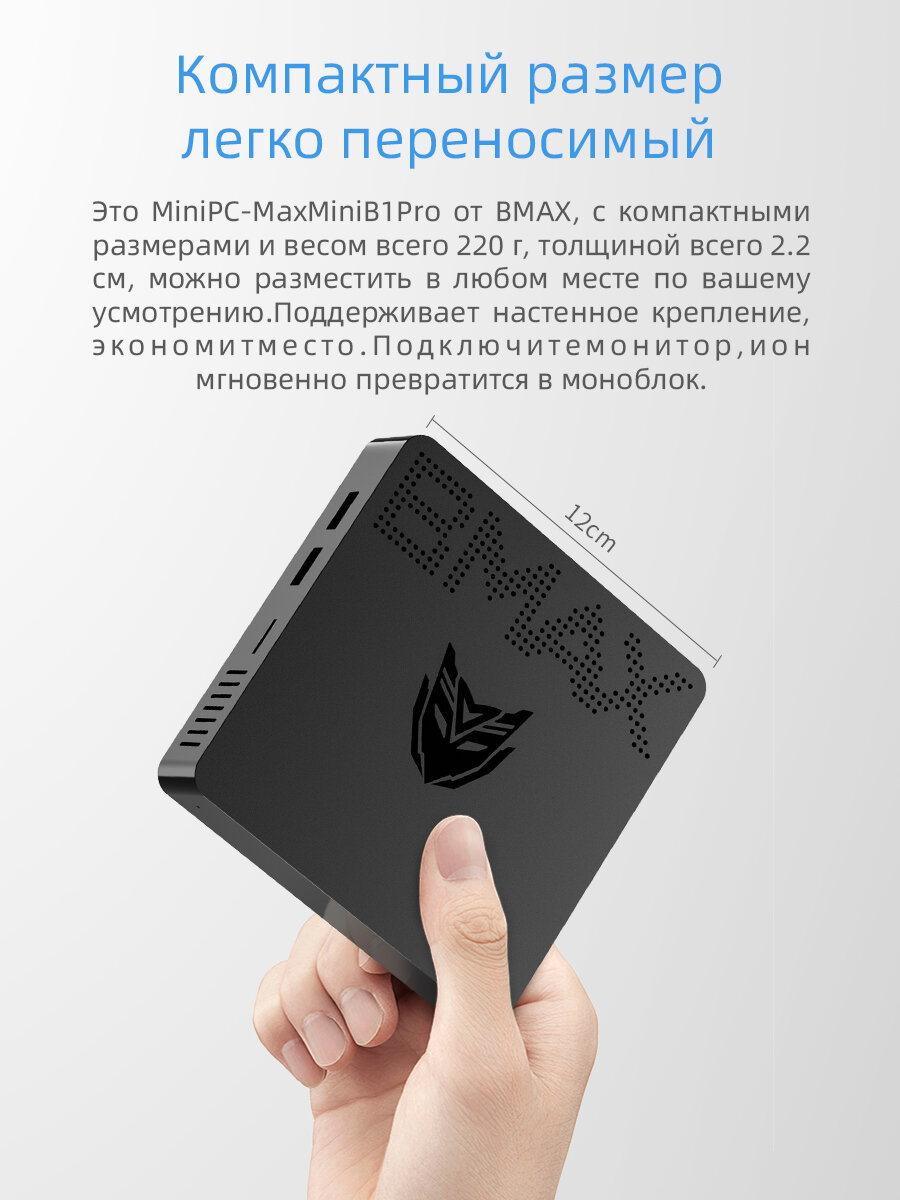 Купить Мини ПК BMAX B1 PRO, Intel Gemini Lake N4000, RAM 8 ГБ, ROM 128 ГБ, Intel UHD Graphics 600, Windows 11 Pro, Чёрный с доставкой по всей России.