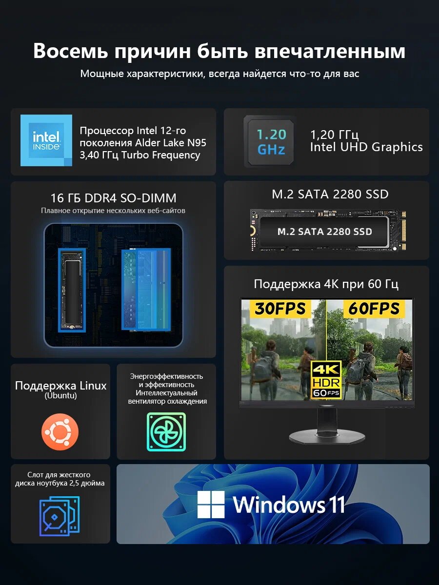 Мини ПК BMAX B4 Intel N95 ,16 ГБ ОЗУ и 512 ГБ SSD, Windows 11,4Cores ;4 Threads: сравнение цен, характеристики, фото, актуальное наличие и цены.