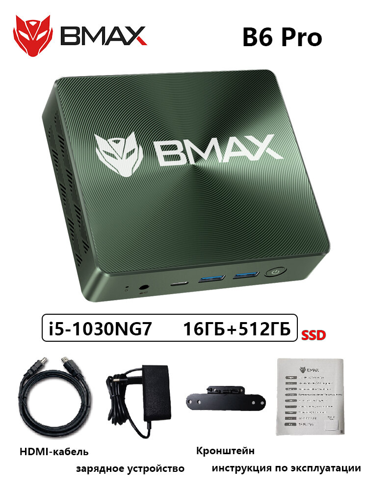 Мини ПК BMAX B6 PRO, Intel i5-1030NG7, RAM 16ГБ DDR5, ROM 512 ГБ SSD, Intel Iris plus Graphics, Type-C, Windows 11 Pro, зеленый: сравнение цен, характеристики, фото, актуальное наличие и цены.