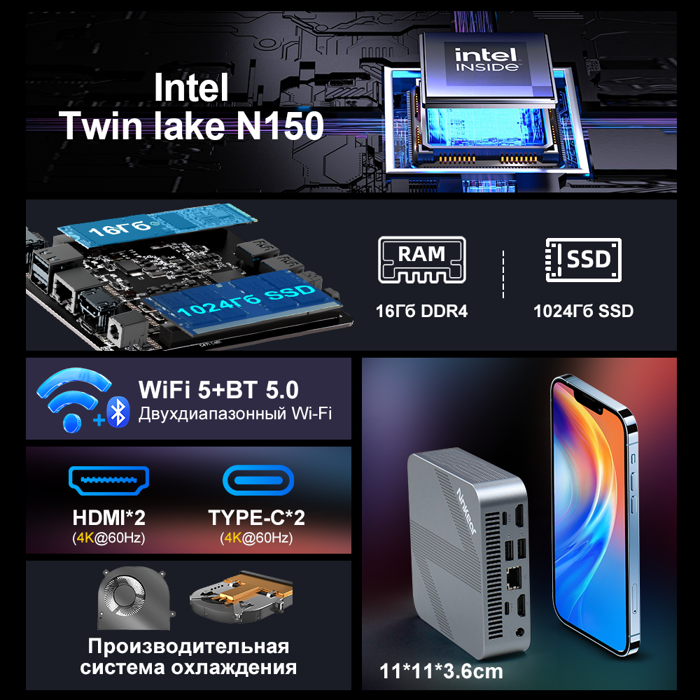 Купить Мини ПК Ninkear «N10 Pro», Intel N150,16GB RAM, SSD 1TB, Windows 11 с доставкой по всей России. Мини ПК Ninkear «N10 Pro», Intel N150,16GB RAM, SSD 1TB, Windows 11: сравнение цен, характеристики, фото, актуальное наличие и цены.