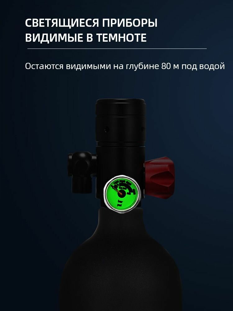 ✅【Высококачественный резервуар для дайвинга】Резервуар изготовлен из авиационного алюминия 6061, на поверхности используется антиокислительное покрытие, которое лучше противостоит коррозии и ржавчине морской воды. Регулятор оснащен декомпрессионной камерой и взрывозащитным клапаном для большей безопасности; оснащен воздушным выключателем, который может быть выключен, когда не используется, чтобы избежать утечки воздуха; оснащен манометром, чтобы видеть давление в реальном времени; выпускной клапан оснащен в дыхательном клапане, может легко сбросить давление.