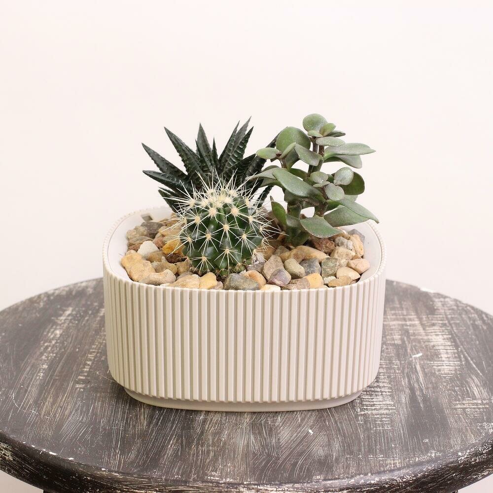 Мини садик из суккулентов в кашпо: кактус, хавортия, крассула, 15 см: сравнение цен, характеристики, фото, актуальное наличие и цены.