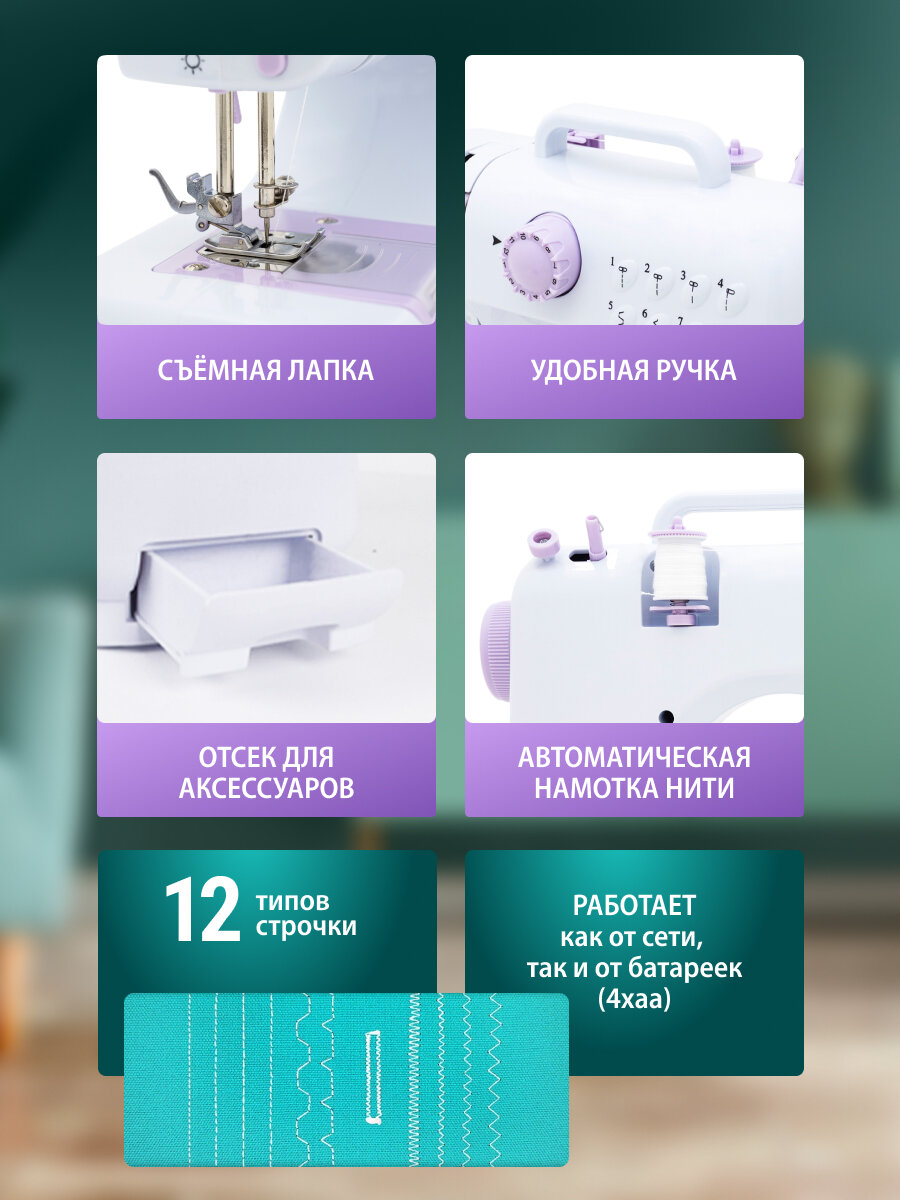 | Швейные операции | прямая строчка, строчка "зигзаг", эластичная строчка |