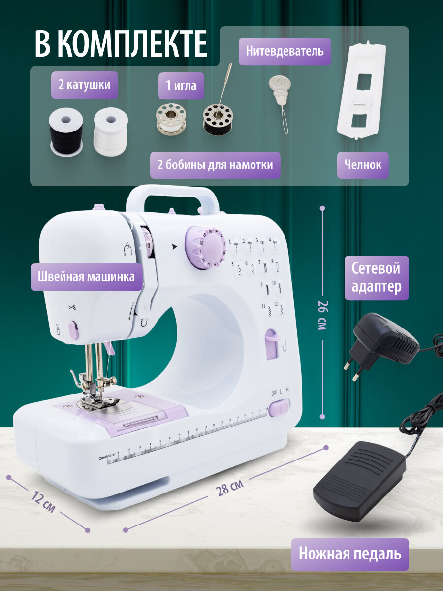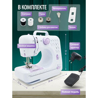 | Подробная комплектация | Швейная машинка - 1 шт, Ножная педаль - 1 шт, Сетевой адаптер, Катушки - 2 шт, Игла - 1 шт, Бобины для намотки - 2 шт, Нитевдеватель - 1 шт, Челнок |