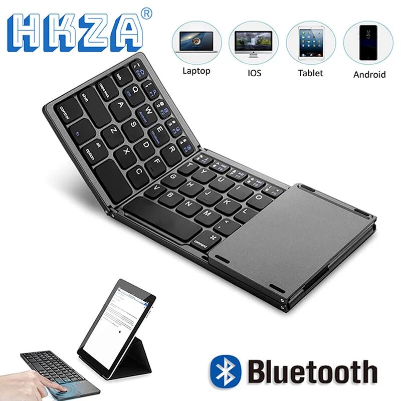 Купить Мини складная Bluetooth-клавиатура с тачпадом для Windows, Android, iOS, Черный, with Russian Sticker с доставкой по всей России.