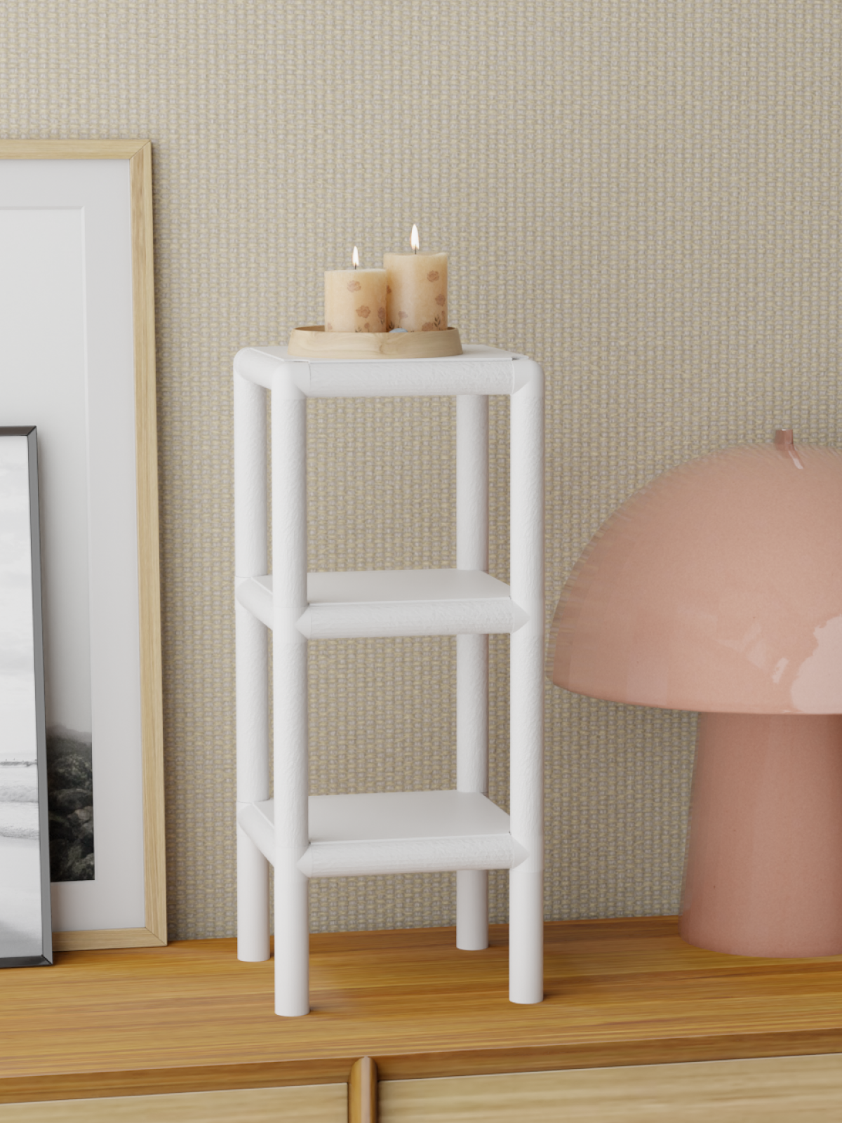 Купить Мини стеллаж этажерка на пол в стиле лофт, 3 полки, 20х20×42,5 см, Белый, Delta-Loft с доставкой по всей России.
