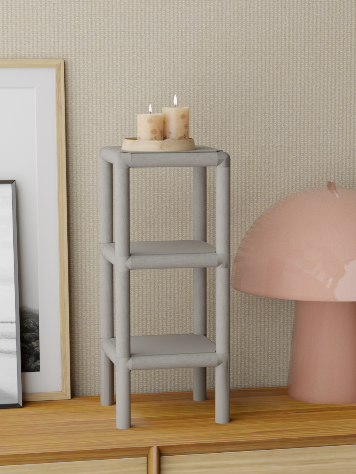 Купить Мини стеллаж этажерка на пол в стиле лофт, 3 полки, 20х20×42,5 см, Серый, Delta-Loft с доставкой по всей России.