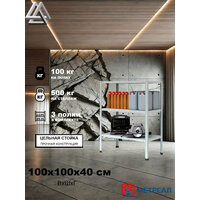 Мини-стеллаж металлический Метреал СтМ-500 100x100x40 см, 3 полки, серый, (В*Г-100x102x42)
