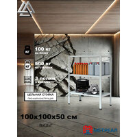 Мини-стеллаж металлический Метреал СтМ-500 100x100x50 см, 3 полки, серый, (В*Г-100x102x52)