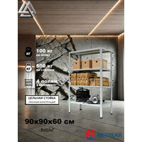 Мини-стеллаж металлический Метреал СтМ-500 90x90x60 см, 4 полки, серый, (В*Г-90x92x62)