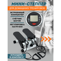 Купить Мини-степпер с эспандерами, 37х17.5х29 см, встроенный компьютер (счетчик шагов, регулировка нагрузки) спортивный инвентарь с доставкой по всей России.