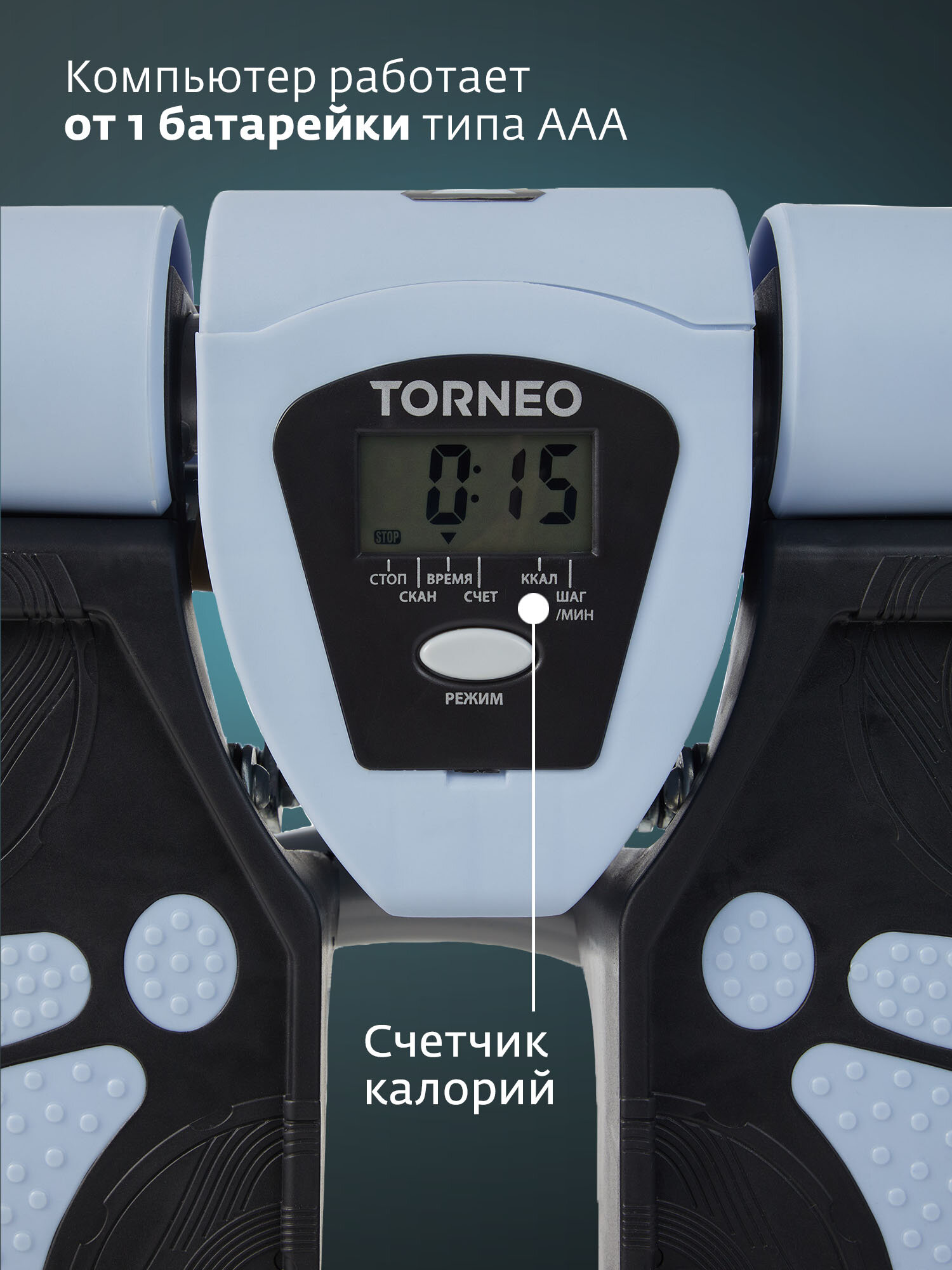 Мини-степпер Torneo Twister — легкий и компактный способ привести себя в форму без лишних усилий и затрат. Тренажер предварительно собран и готов к использованию, он займет минимум места в вашем доме и станет незаменимым помощником в борьбе за подтянутое тело. Встроенный LCD-дисплей позволит отслеживать количество шагов, время тренировки и расход калорий, а взаимозависимый ход педалей и поворотный механизм сделают ваши тренировки более эффективными и разнообразными. Усиленная конструкция EverProof гарантирует долгий срок службы, а 2 эспандера в комплекте помогут дополнительно проработать мышцы рук и плечевого пояса.