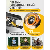 Мини степпер тренажер для дома для ног и ягодиц, гидравлический, 11 уровней нагрузки, чёрный