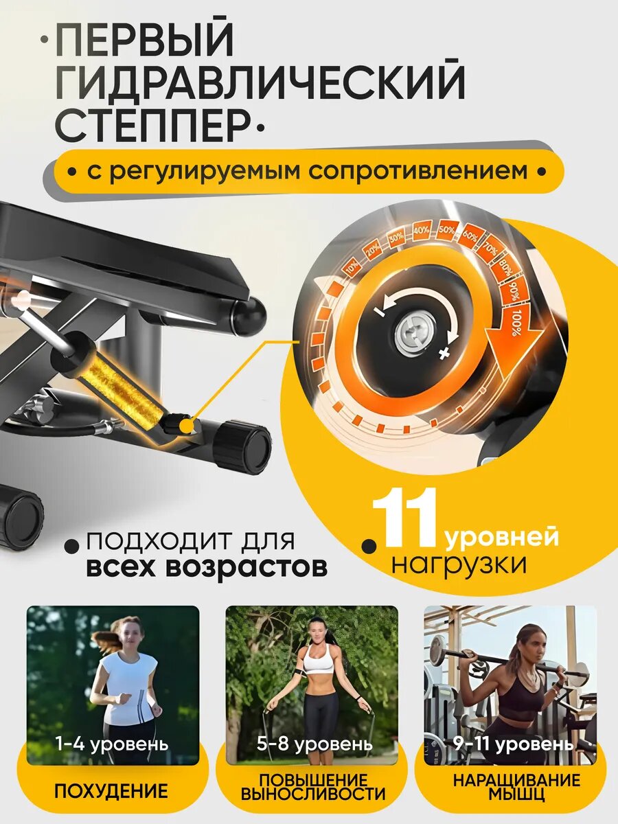 Мини степпер тренажер для дома для ног и ягодиц, гидравлический, 11 уровней нагрузки, чёрный: сравнение цен, характеристики, фото, актуальное наличие и цены.