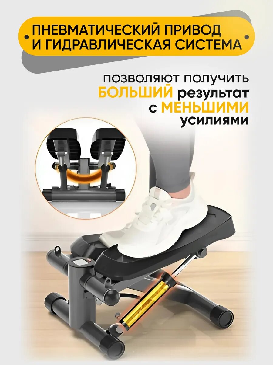 Купить Мини степпер тренажер для дома для ног и ягодиц, гидравлический, 11 уровней нагрузки, чёрный с доставкой по всей России.