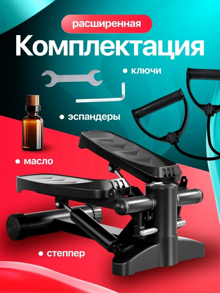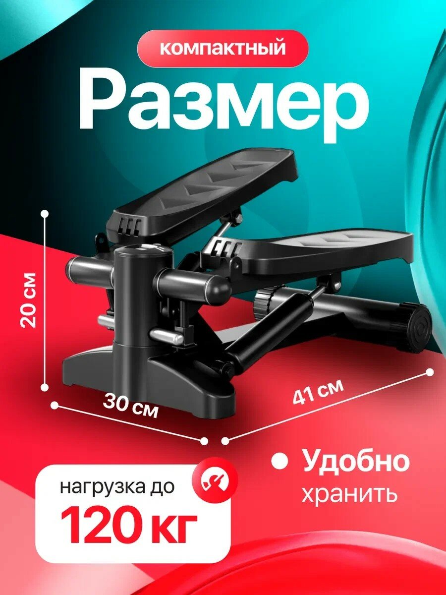 Купить Мини степпер тренажер для дома для ног и ягодиц, гидравлический, автоматическая регулировка нагрузки, чёрный 120 кг с доставкой по всей России.