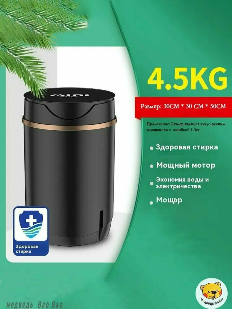 Мини стиральная машина, с отжимом 300Вт, 4.5л, портативная, черная: сравнение цен, характеристики, фото, актуальное наличие и цены.