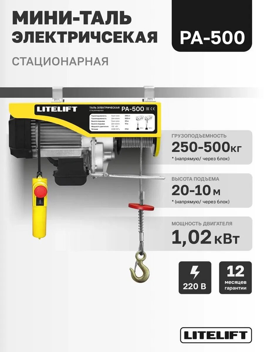 Купить Мини таль электрическая LITELIFT PA-500 250/500кг 20м 220в стационарная с доставкой по всей России. Мини таль электрическая LITELIFT PA-500 250/500кг 20м 220в стационарная: сравнение цен, характеристики, фото, актуальное наличие и цены.