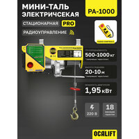 Модель PA-500/1000 (radio control) Грузоподъемность, кг 500 Грузоподъемность с блоком, кг 1000 Высота подъёма, м 20 Высота подъёма через блок, м 10 Скорость подъема, м/мин 10 Тип передвижения Стационарная Диаметр троса (каната), мм 6 Двигатель подъема, кВт 1,95 Питание, В 220 Тормоз Электромагнитный, надёжно блокирует груз при отключении питания Условия эксплуатации -20 + 40С, Лёгкий, S3-30%, У2 (Использовать под навесом) Габариты, мм 520х370х250 Вес, кг 33,5 Гарантия 18 месяцев