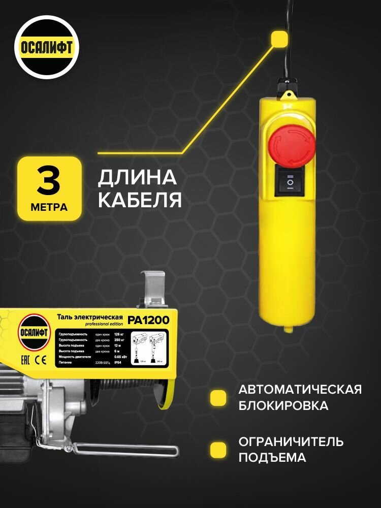 Мини таль электрическая (тельфер) OCALIFT PRO PA-1200 600/1200кг, 12м, 220в: сравнение цен, характеристики, фото, актуальное наличие и цены.