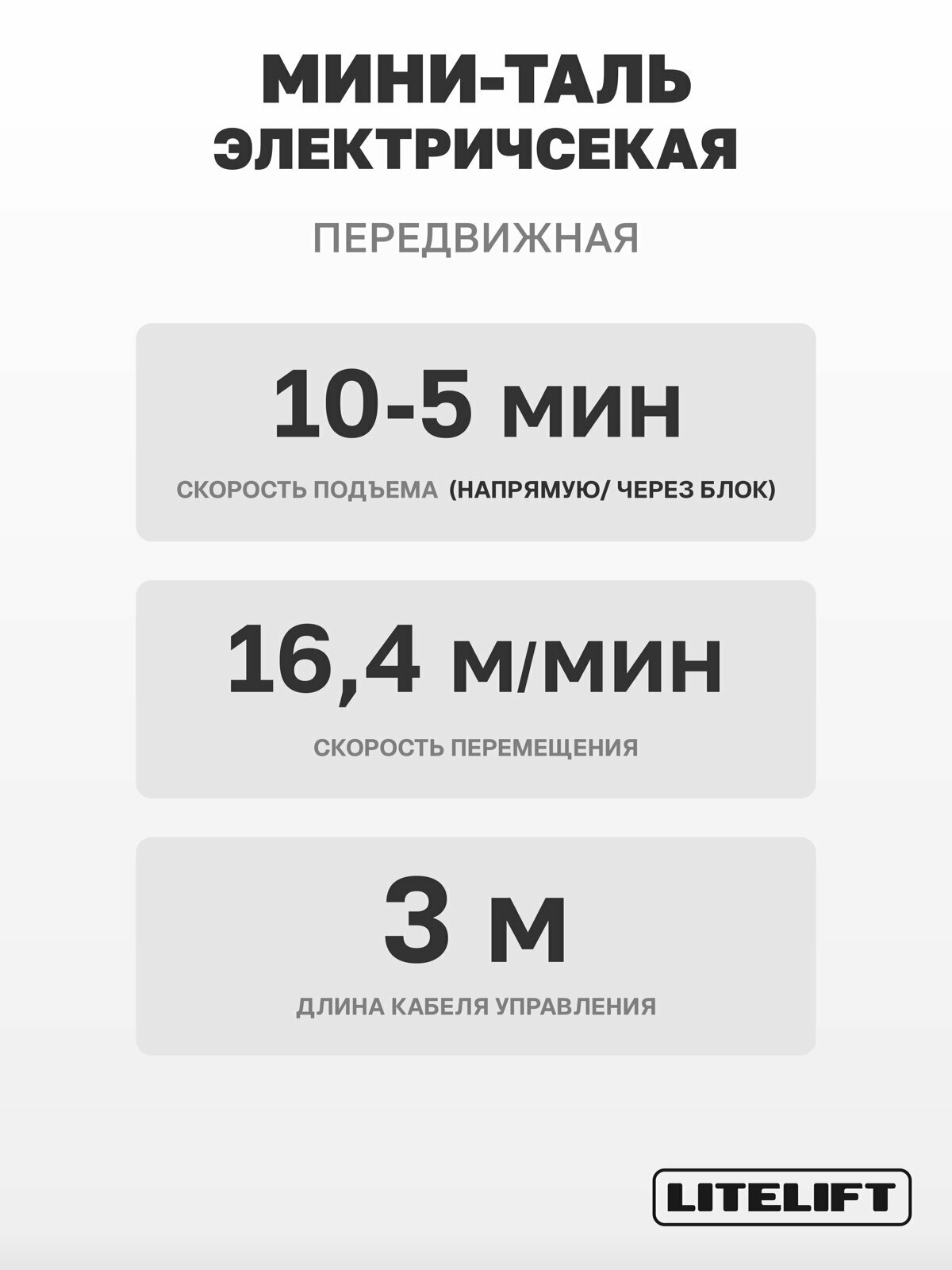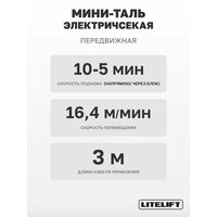 Мини таль передвижная LITELIFT PA-500 250/500кг 12м 220в на электрокаретке: сравнение цен, характеристики, фото, актуальное наличие и цены.