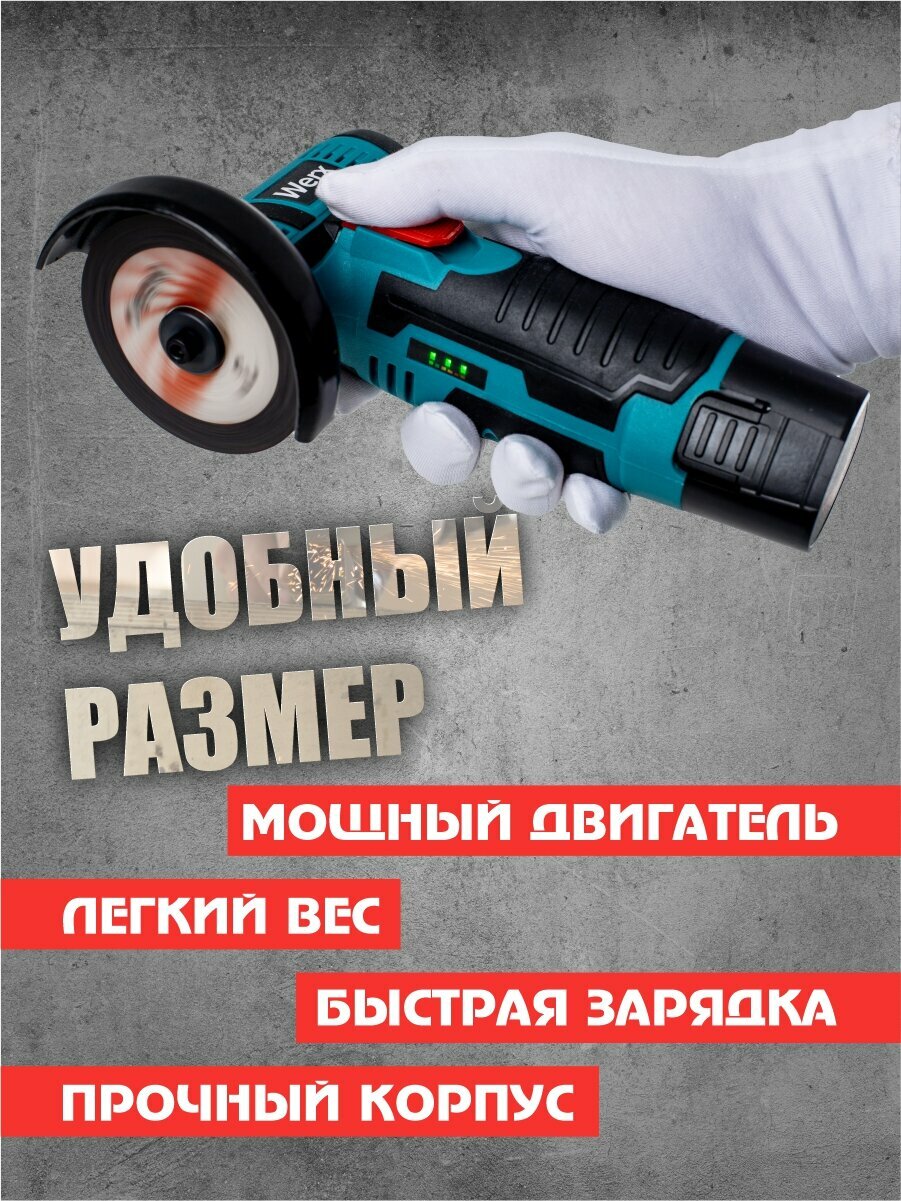 Мини УШМ аккумуляторная, Болгарка 19500об/мин 2 акб, 2 диска и зу, 19500 об/минуту коробка