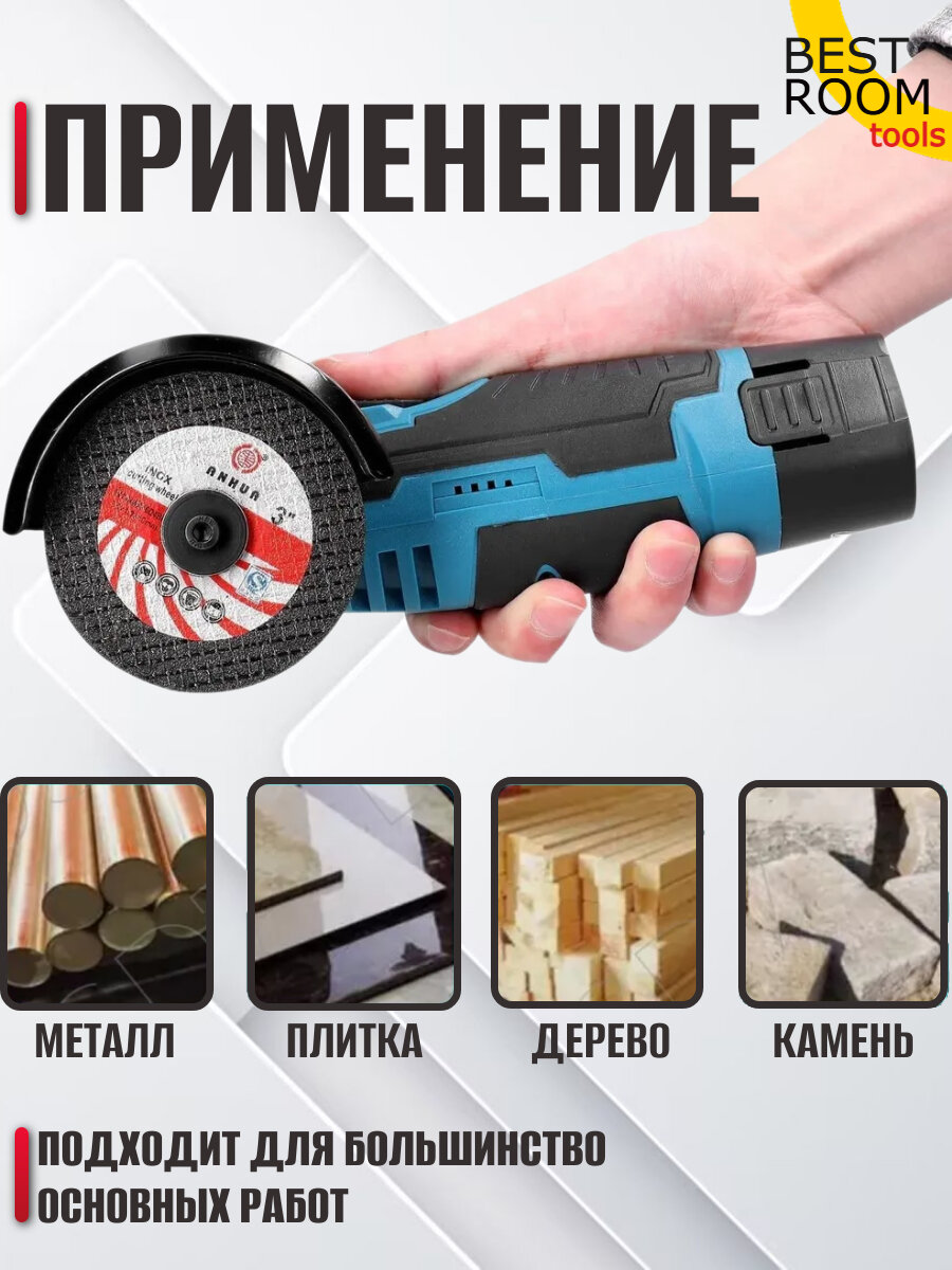 Мини УШМ Best Room, 12В, 75мм, 19500об/мин, антивибрационная, блокировка кнопки: сравнение цен, характеристики, фото, актуальное наличие и цены.