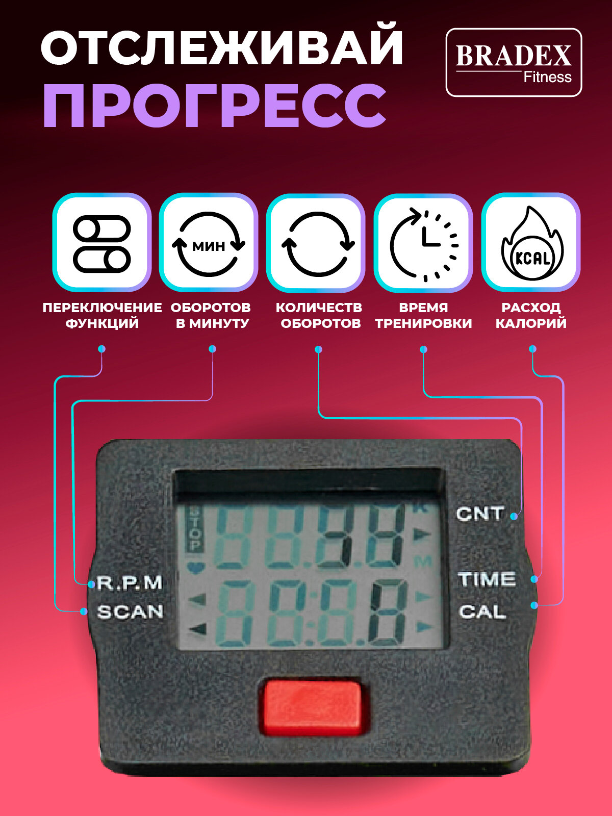 Механический велотренажер для дома Bradex — это небольшой складной спортивный кардиотренажер с предельно простым применением. Универсальный мини велотренажер для рук и ног повышает аэробную способность организма, развивает выносливость дыхательной и сердечно-сосудистой систем. Способствует снижению веса, сжиганию жира и комплексному похудению фигуры. Избавлению от целлюлита, поддержанию тела и мышечного корсета в тонусе. На портативном велотренажере можно тренировать практически все группы мышц: зоны бедер, живота, ягодиц, голени, икр, пресса, плеч, спины и рук. Расположите его на столе или на полу и выполняйте упражнения, сидя на стуле или диване. Приняв удобное положение, вы максимально снизите давление на суставы. Фитнес тренировка на домашнем тренажере для ног может стать полноценной заменой кардио занятиям на уличном велосипеде или аэробики, гимнастики в спортзале. Ручной педальный минивелотренажер идеально подходит для людей с различной физической подготовкой: как для спортсменов, так и начинающих пользователей. Рекомендуется в качестве реабилитационного оборудования. Может применяться для лечебной физкультуры (лфк) программ реабилитации детей, взрослых, пожилых людей и инвалидов. Для восстановления больных после травм, операций, инсультов, для пациентов с нарушениями двигательной функции. Продуманный регулируемый конструктив и устойчивые прорезиненные накладки на ножки не дают тренажеру скользить и портить напольное покрытие. Встроенный монитор покажет на электронном дисплее таймер сожженных калорий, счетчик общего количества оборотов и в минуту, датчик времени. Широкие нескользящие педали с рельефной поверхностью и ремешками обеспечивают правильную фиксацию ступней. Простота сборки, компактный размер и легкий вес позволяют брать велосипедный аппарат с собой. При хранении инвентарь занимает минимум места даже в небольшой квартире. В сложенном виде можно хранить в горизонтальном или вертикальном положении. Выполнен из нержавеющей стали и прочного пластика, выдерживает до 120 кг. Переносной спортинвентарь для укрепления здоровья станет приятным подарком родителям, бабушке, маме, дедушке или папе на день рождения, любимой девушке, жене или подруге на 8 марта, парню, мужу, другу на новый год, 23 февраля. Добавьте бренд Брадекс в избранное. У нас часто проходят акции и распродажи, где вы можете купить наши спорт товары для женщин и мужчин со скидкой.