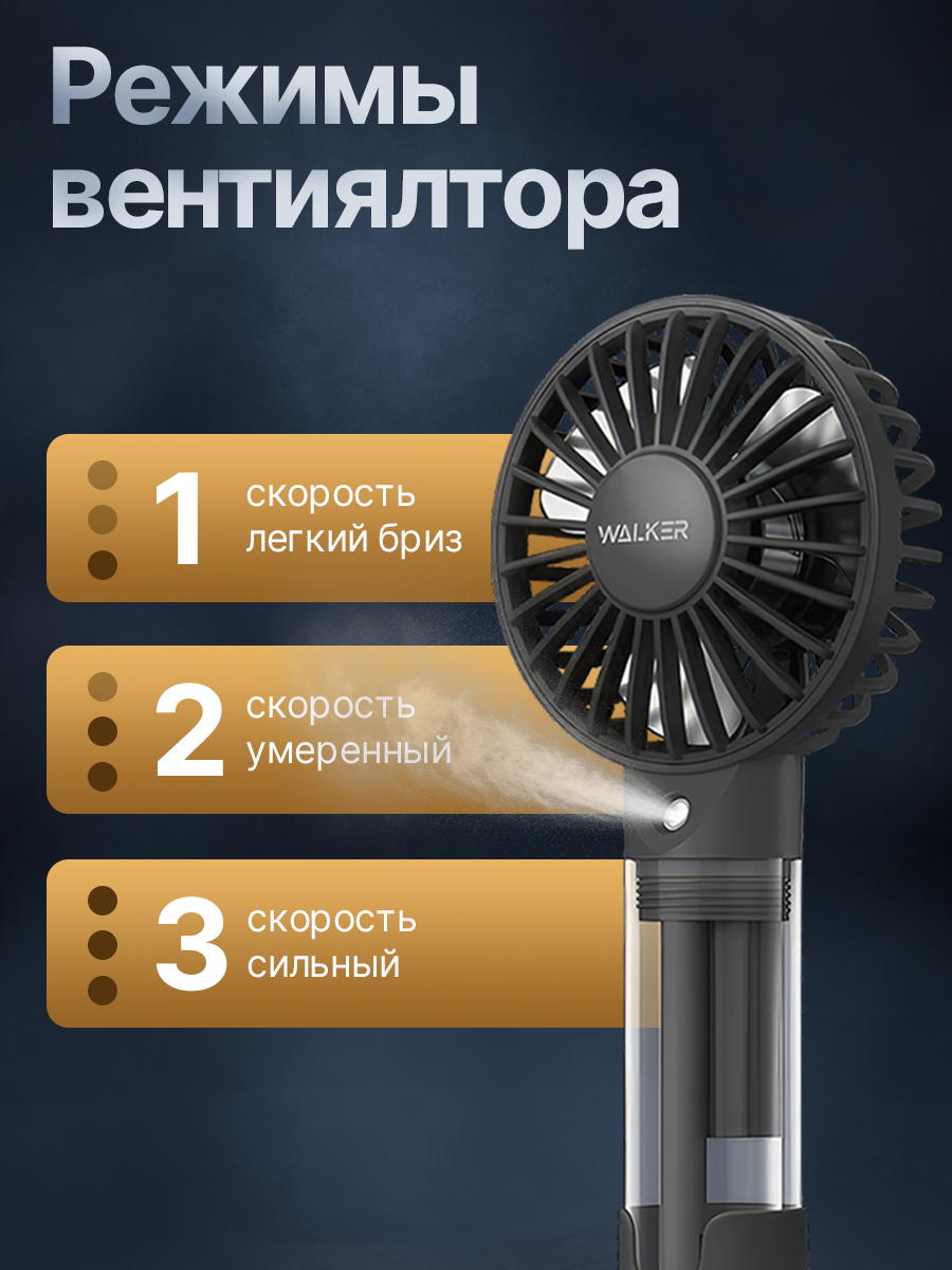 Купить Мини вентилятор настольный с распылителем воды WALKER, портативный, ручной, с увлажнителем и с охлаждением, как xiaomi, черный с доставкой по всей России.
