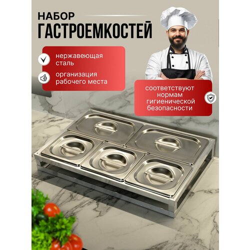 Набор гастроемкостей из нержавеющей стали с увеличенной прочностью и долговечностью поможет вам удобно и красиво организовать рабочее место повара.