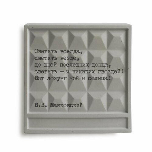 Уникальный продукт созданный вручную с нанесением гравировки и покрытием воском. Этот букенд станет надежной опорой для ваших книг! Стильный предмет интерьера украсит любое пространство, порадует человека с тонким вкусом и интересом к городской среде и архитектуре. Мы хотим сохранить эстетику этого промышленного шедевра советского периода в миниатюре, ведь это тоже наша история, и она бесценна, как бесценны воспоминания каждого из нас. Могут присутствовать несовершенства поверхности. Состав: гипс, бетон, пигмент. Вес 1 шт: 1200 грвысота/длина/ширана : 12/12/5 см