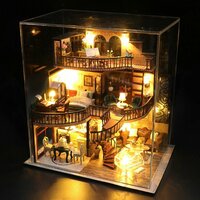 Комплектация: пылезащитный купол (оргстекло), подсветка (провода, выключатель, светодиодная лампа); деревянные основания для каркаса (стены, пол); бумага, текстиль, проволока и т. д. (для создания всех элементов декора); элементы интерьера в миниатюре; инструменты для сборки (клей 2 шт, пинцет, линейка), инструкция