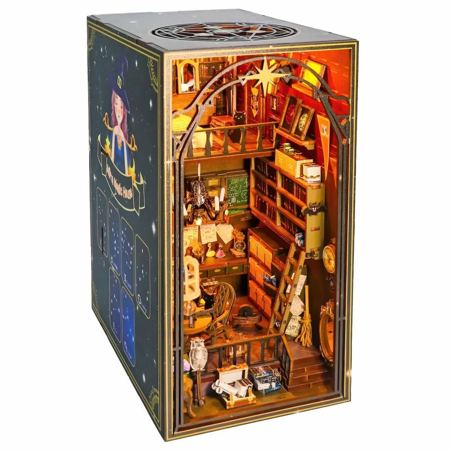 Миниатюрная сборная модель (румбокс) «Книжная лавка» — это реалистичный интерьерный конструктор, который придется по душе творческим личностям, коллекционерам и юным дизайнерам. Все элементы будущего помещения находятся в разобранном виде, поэтому перед вами стоит задача самостоятельно собрать все до самых мельчайших деталей: мебель, книги, полки, лампочки и другие миниатюрные аксессуары пространства. Интерьерный конструктор тренирует мелкую моторику, развивает чувство вкуса и воображение.