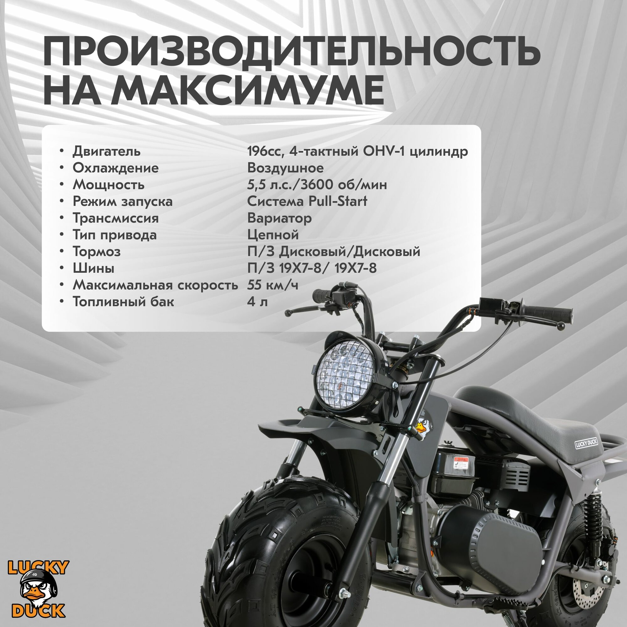 Минибайк Lucky Duck Ranger RB200MAX, 196см³, вариатор, дисковые тормоза, задний амортизатор, серый графит: сравнение цен, характеристики, фото, актуальное наличие и цены.