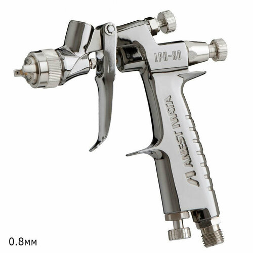Миникраскопульт ANEST IWATA LPH-80 с дюзой 0,8мм - миникраскопульт низкого давления LVLP (HVLP). Высоко технологичные миникраскопульты с центральным бачком работающие по последней технологии LVLP (низкое давление при маленьком потреблении воздуха). В данных моделях применена распыляющая головка нового типа которая работает по LV (low volume) технологии, позволяющая потреблять значительно меньшее количество воздуха приблизительно 60 литров/минуту при этом степень атомизации (распыления) остается на высочайшем уровне. Расход ЛКМ данного краскораспылителя - 45мл/м2 с размером факела 100мм.