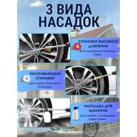 В комплекте идут различные насадки: грязевая фреза, сопло стандартной насадки, точечная насадка. Это позволяет использовать мойку для различных задач, таких как очистка автомобиля, мойка окон или уборка территории.