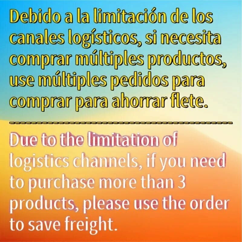 Instrucciones de compra: Debido a la limitación de los canales logísticos, si necesita comprar múltiples productos, use múltiples pedidos para comprar para ahorrar flete