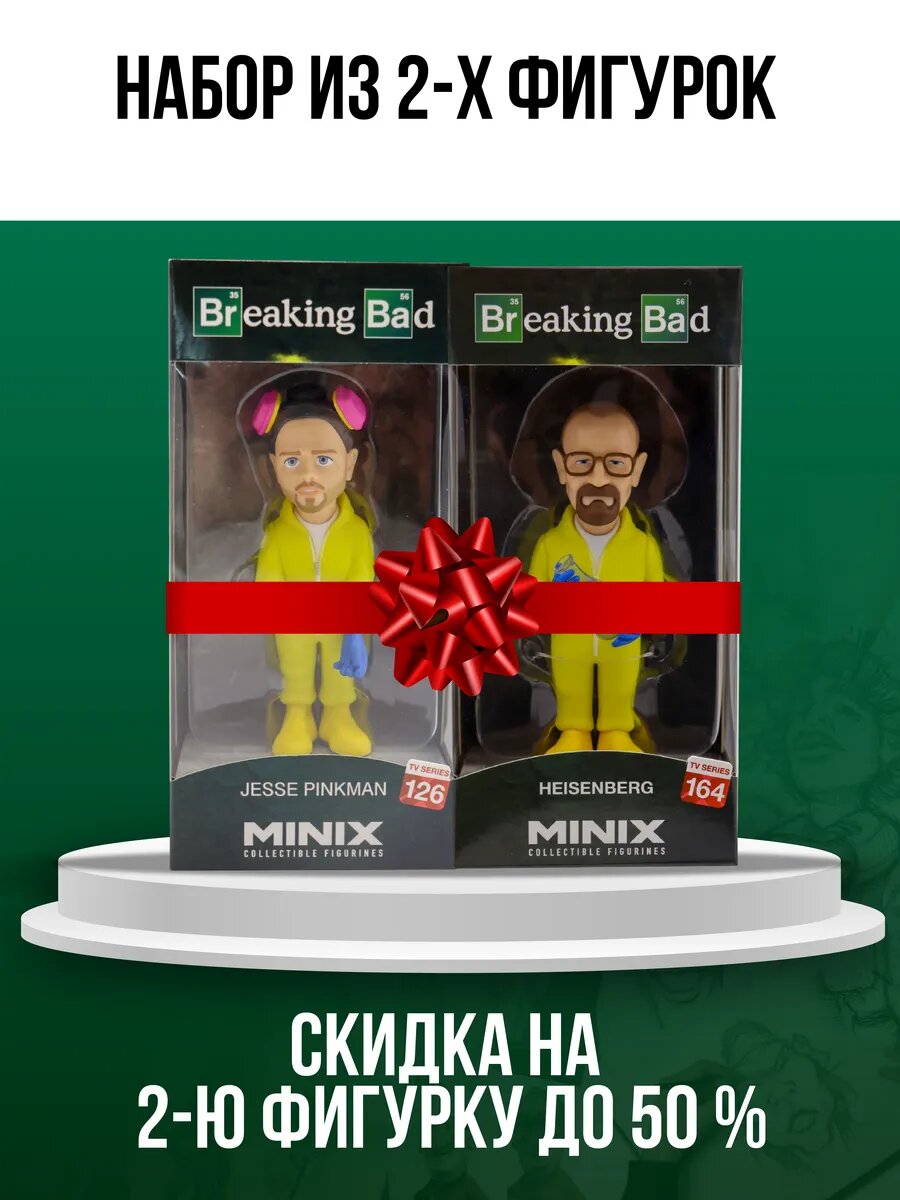 Подарочный набор из двух коллекционных фигурок от бренда Minix Во все тяжкие"Breaking Bad" Джесси Пинкман и Уолтер Вайт. Благодаря компактности и устойчивости декоративная фигурка поместится на любую полку. Украсьте свое рабочее место или стилизуйте интерьер. Лицензионные статуэтки Миникс отличает высокая детализация по сравнению аналогичными статуэтками funko pop , внимание к стилю каждого героя, прочность и качество материалов, уникальная упаковка! Этот набор станет отличным выбором если вы ищите : подарок для мужчины , подарок для девушки , подарок для парня или подарочный бокс для фаната. Игрушка фигурка придет в дизайнерской коробке с окном. На упаковке мини фигурок вы найдете индивидуальный номер каждого персонажа для истинных коллекционеров. Коллекционные фигурки подходят для любого возраста и повода. Эксклюзивные детские игрушки являются отличным способом собрать свой уникальный набор героев кино, комиксов и мультфильмов. Фигурки Миникс - это крутые человечки, которые станут отличным подарком для мальчика или девочки с шести лет, а также и взрослому. Подарочный box с Фигурками Миникс - идеальный выбор для подарка, точно не хуже чем фигруки Funko Pop ( фанко поп). Выберите свою модельку! Игрушка подходит для любого праздника. Фигурка -это мужской подарок и подарок мужчине на день рожения, подарок парню, подарок мужу на день рождения или подарок другу на др. Игрушка подойдет как для девочек, так и для мальчиков. Веселая и необычная аниме фигурка привлечет внимание любителей такого стиля. Подарок поможет погрузить вас в мир роботов, кино, сериалов, спорта, музыки, компьютерных игр, мультфильмов и оживит атмосферу детской комнаты яркими персонажами.