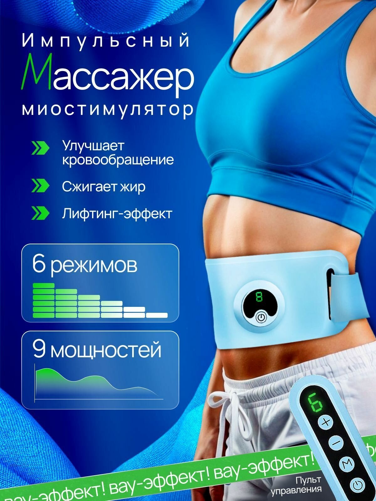 Купить Миостимулятор для мышц тела с подогревом, мини массажер электрический для похудения живота ног пресса, лимфодренажный аппарат от боли в шее и спине, антицеллюлитный тренажер, EMS с доставкой по всей России.