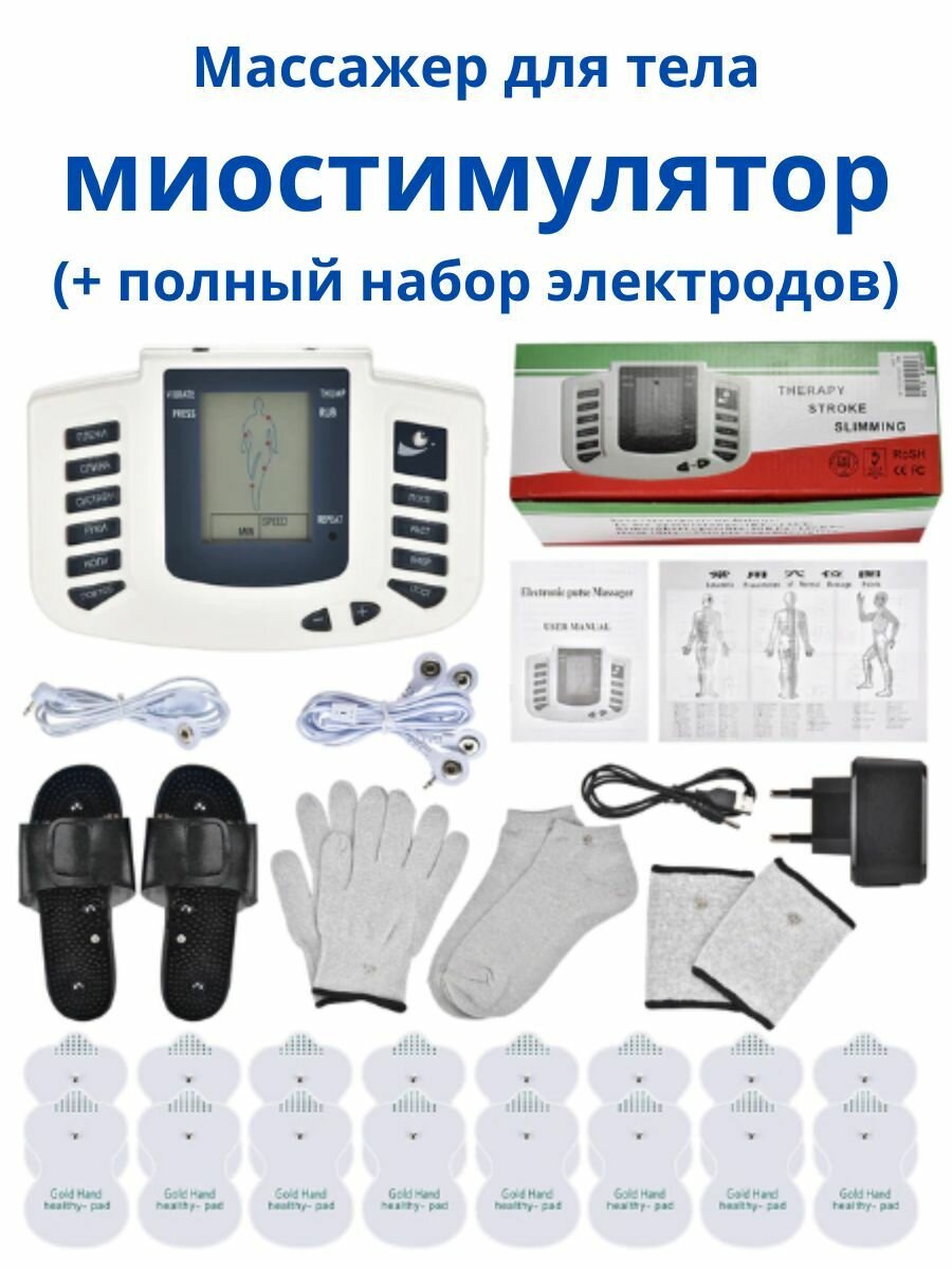 Миостимулятор импульсный массажер электрический JR-309 для лечения, похудения, физиотерапии, в комплекте терапевтические тапочки, перчатки, носки, напульсники, 16 электродов и 2 шнура: сравнение цен, характеристики, фото, актуальное наличие и цены.