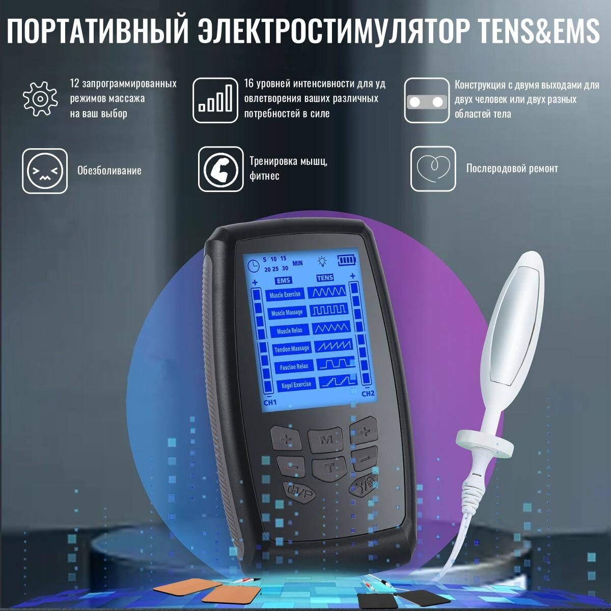 Миостимулятор массажер для тела EMS+TENS, тренажер для мышц, 2 канала, 6 электродов, 12 режимов, таймер, упражнение Кегеля с вагинальным зондом: сравнение цен, характеристики, фото, актуальное наличие и цены.