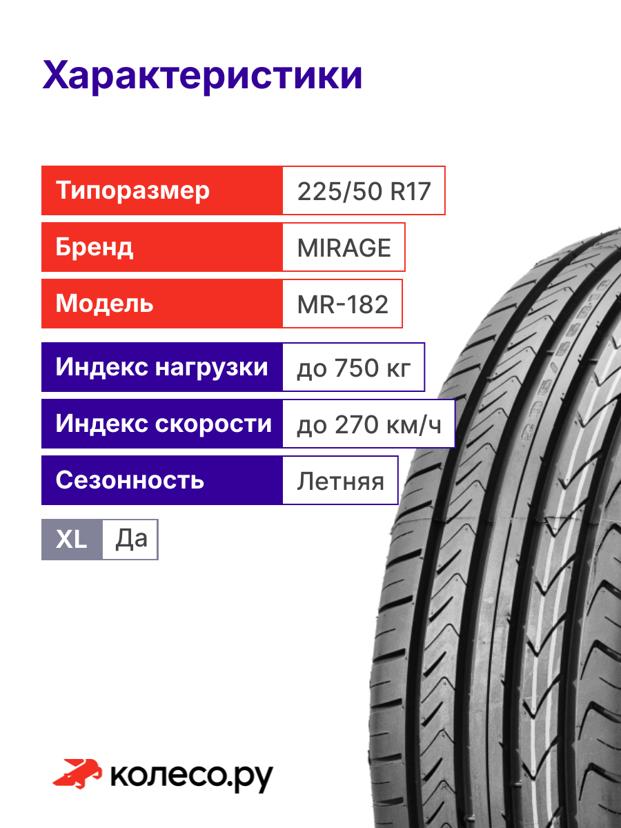 Летние автомобильные шины Mirage MR-182 225/50 R17 98W представляют собой хороший выбор для тех, кто ценит комфорт, безопасность и долговечность. Автомобильные шины Mirage MR-182 предназначены для легковых автомобилей и обеспечивают отличное сцепление с дорогой в летний период. Шины имеют ширину профиля 225 мм и высоту профиля 50, что обеспечивает оптимальное сочетание комфорта, управляемости и устойчивости на дороге. Данные шины хорошо показали себя как на сухой, так и на мокрой дороге. Благодаря специальной резине и рисунку протектора, шины обеспечивают хорошее сцепление и позволяют быстро тормозить, что делает поездки безопасными. В целом, летние автомобильные шины Mirage MR-182 225/50 R17 98W - это надежный выбор для тех, кто ищет качественные и долговечные шины для своего автомобиля.