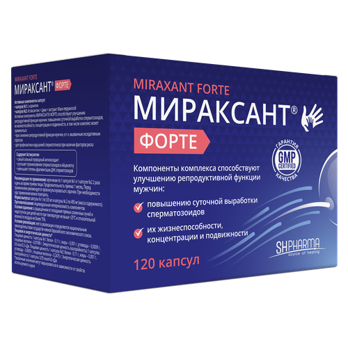 Активные компоненты Мираксанта форте способны значительно улучшить качественные и количественные показатели спермограммы, снижая влияние негативных факторов на фертильность мужчины.