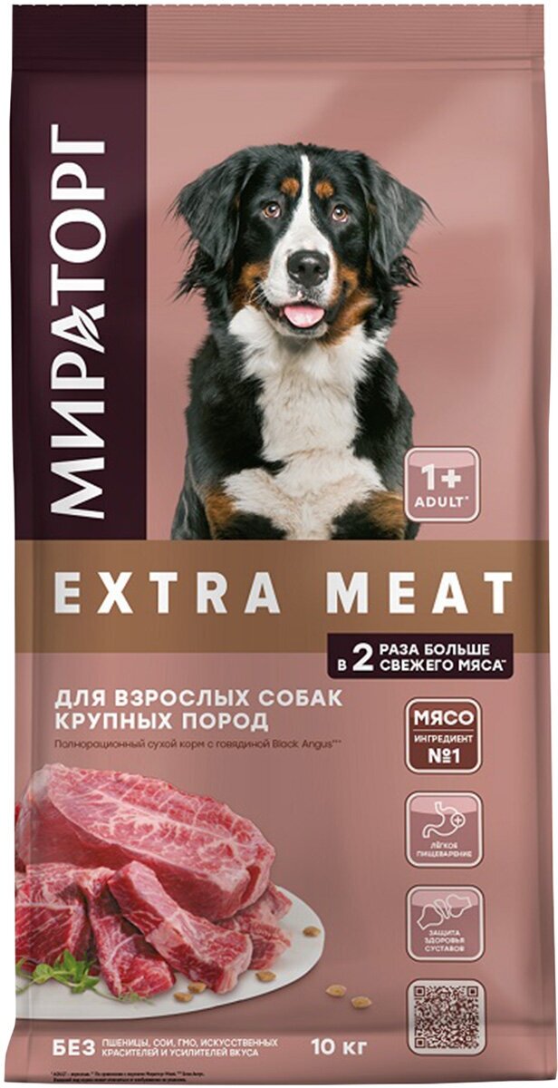 Купить Мираторг EXTRA MEAT для взрослых собак крупных пород с говядиной Black Angus (10 кг) с доставкой по всей России. Мираторг EXTRA MEAT для взрослых собак крупных пород с говядиной Black Angus (10 кг): сравнение цен, характеристики, фото, актуальное наличие и цены.
