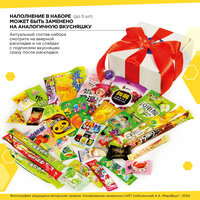 Вкусный подарок от МираВкус порадует Вас жевательными конфетами с фруктовой и молочной начинками, Японским пирожным моти, ароматными вкусными жевательными резинками, прикольной шипучкой, йогуртовыми палочками, вкуснейшими мармеладными и желейными конфетами, нежным печеньем, безалкогольными сладким напитком на основе фруктового сока и множеством вкусных и полезных сладостей! Многие вкусняшки напоминают Тайские и Корейские конфеты.