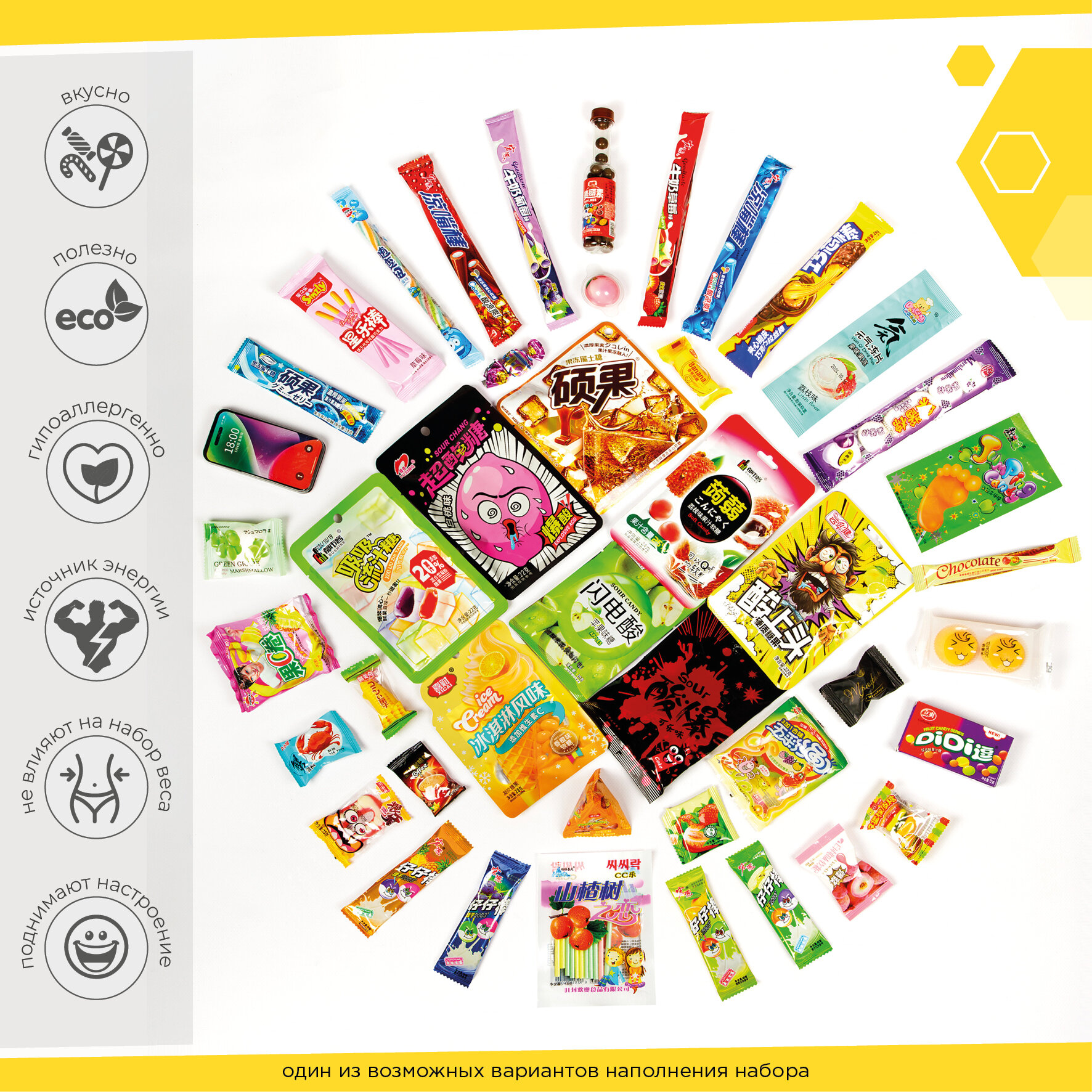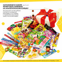 Вкусный подарок от МираВкус порадует Вас жевательными конфетами с фруктовой и молочной начинками, Японским пирожным моти, ароматными вкусными жевательными резинками, прикольной шипучкой, йогуртовыми палочками, вкуснейшими мармеладными и желейными конфетами, нежным печеньем, безалкогольными сладким напитком на основе фруктового сока и множеством вкусных и полезных сладостей! Многие вкусняшки напоминают Тайские и Корейские конфеты.
